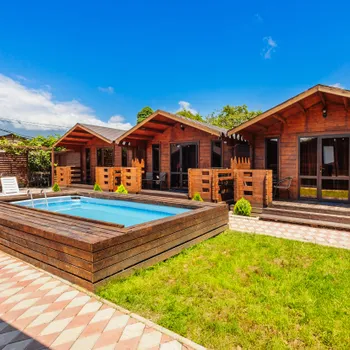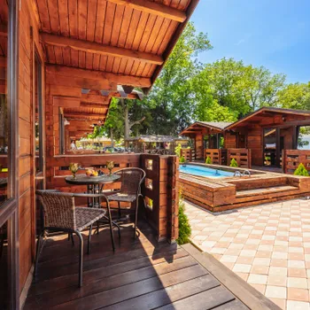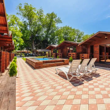 На территории комплекса есть всё для комфортного проживания: бассейн для освежающего отдыха, оборудованная кухня-веранда для самостоятельного приготовления блюд, зона барбекю и уютные места для вечерних посиделок. Закрытая территория и парковка обеспечивают безопасность и спокойствие гостей.