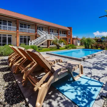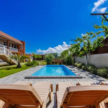 Отель Язон в Алахадзы — это уютное место для спокойного отдыха у самого моря, где можно забыть о городской суете и насладиться настоящим отпуском. Отель расположен всего в минуте ходьбы от чистого песчано-галечного пляжа, а рядом находятся магазины, кафе и всё необходимое для комфортного отдыха.